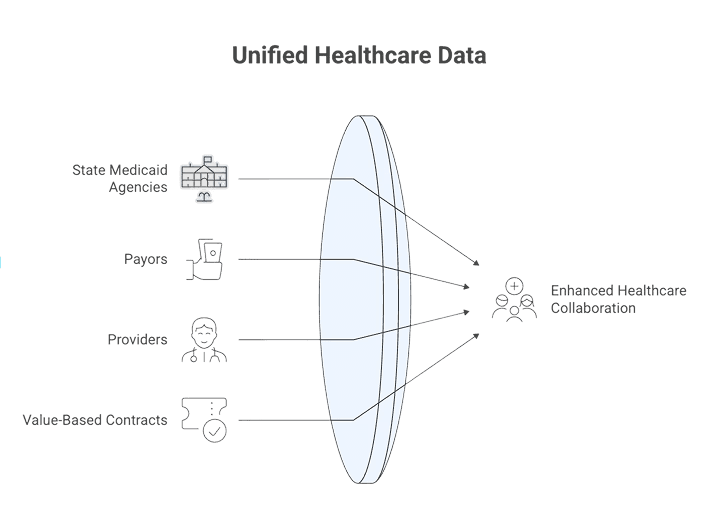 We enable collaboration of state Medicaid agencies, payors and providers with holistic shared data, beyond clinical records and policy claims, and access to multiple value-based contracts at the measure level.
